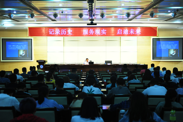 毛玉柱为我校师生做了题为“档案,保存历史底色”的专题报告,通过具体案例分析、档案珍品展示、档案视频播放等形式,就档案内涵、档案价值、档案作用和师生关心的学籍档案、人事档案、家庭档案等做了详细介绍,让师生在感受档案的历史之美、文化之蕴、传承之乐的同时,充分认识到了“盛世修史、时明修志”的重要意义,提升了对档案的重视意识、对记忆的留存意识和对实物的尊重意识。学校档案馆负责人在主持报告会的同时,对各部门、单位、院(系)档案留存、整理、立卷、归档等工作提出了具体要求。