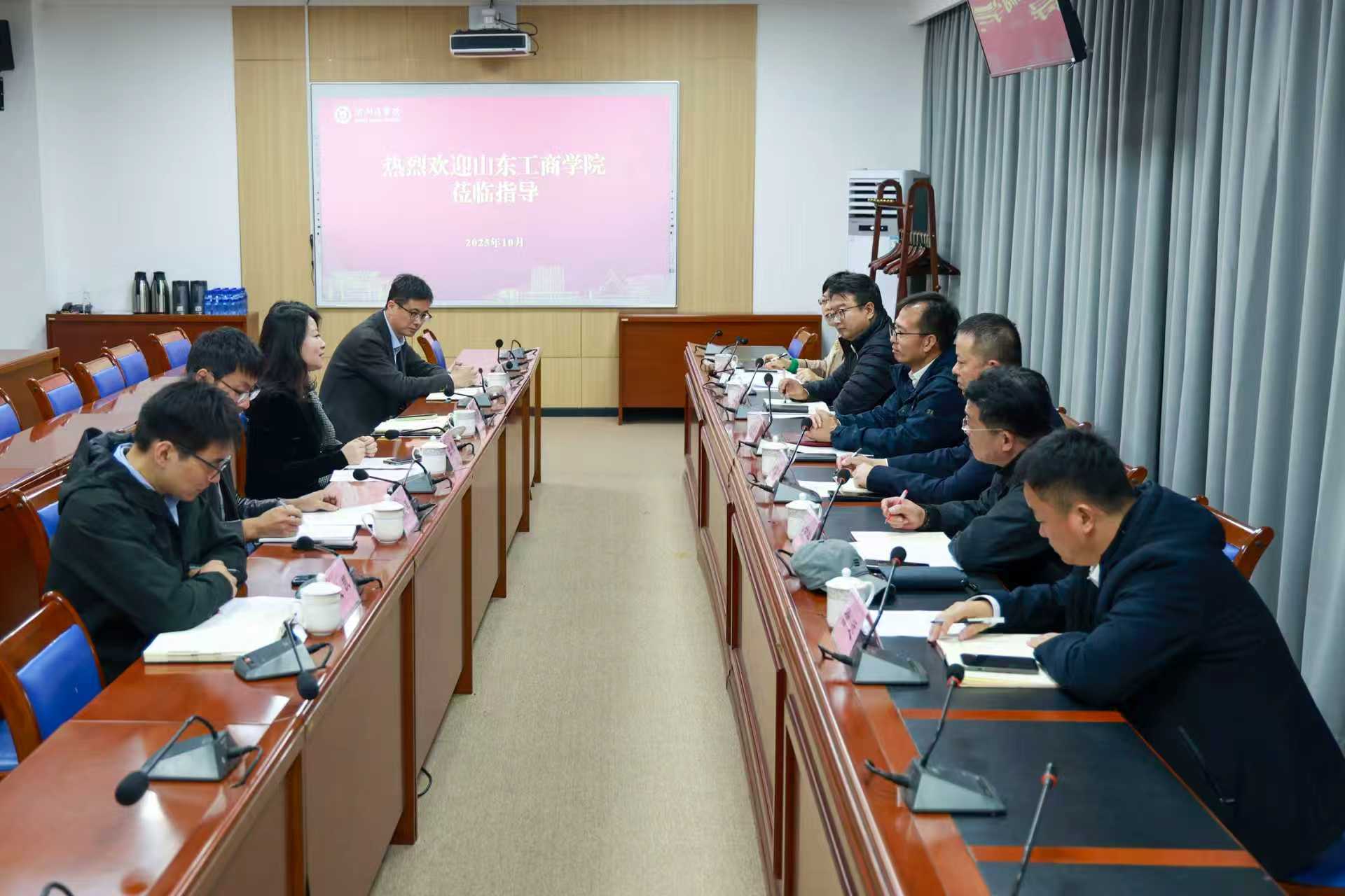 10月24日上午,山东工商学院党委委员、副院长杜曙光一行来校访问,交流科技成果转化等相关工作。校党委委员、副院长田梗会见来宾并座谈交流。