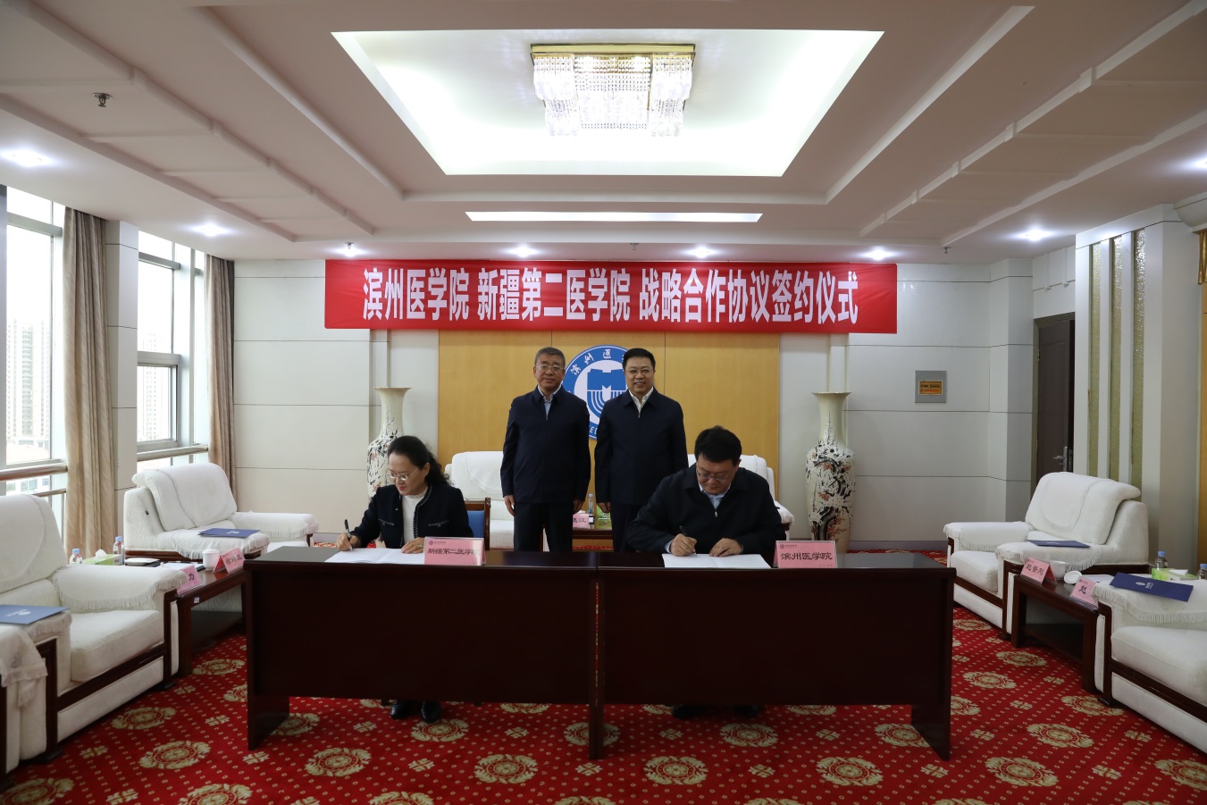 签约仪式上,赵景刚与徐培兰代表双方共同签署了《滨州医学院 新疆第二医学院战略合作协议》。根据协议,双方将主动融入、积极服务国家战略,在学科建设与专业发展、人才培养与师资建设、科研合作与平台共享等方面开展深入合作,合力为社会培养更多高素质的医学及健康领域专业人才,为区域卫生健康事业发展提供有力的科技和人才支撑。