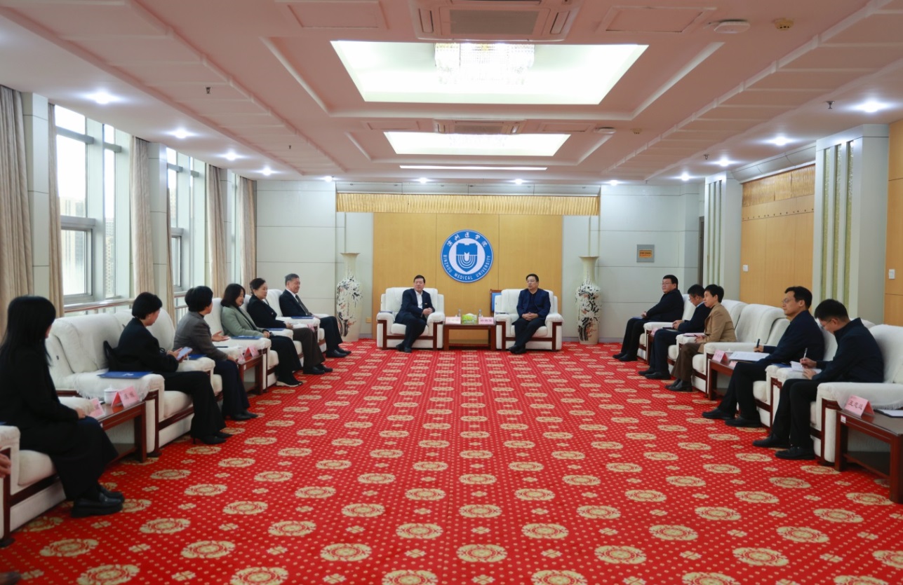 18日下午,孙祥军在办公楼十楼接待室会见杨智斌一行,代表学校对美宝集团杨智斌一行表示欢迎。他介绍了学校近年来发展成效,对美宝集团与学校广泛开展合作以及共同加强科学研究和人才培养表示赞赏;希望学校与美宝集团进一步加强交流、深化合作,共同提升美宝国际班学生培养质量,探索企业出题、学校“揭榜挂帅”的产学研深度融合新范式,共同为医学教育事业和生命健康产业发展做出新的贡献。杨智斌代表美宝集团对学校的高度重视和所做工作表示感谢,对学校的蓬勃发展给予高度评价;介绍了美宝集团在产业发展布局、践行社会责任等方面所做出的积极工作,表示将持续深化互访交流推动各项合作内容取得新成效,共同促进校企合作共赢发展。