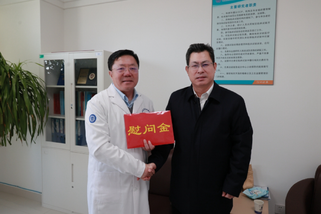 校领导在走访全国优秀共产党员代表时,鼓励他们持续发挥先锋模范作用,牢记初心使命、恪守医者仁心,以榜样力量带动师生医护员工凝心聚力、实干笃行,为守护人民健康、推动学校高质量发展再立新功。